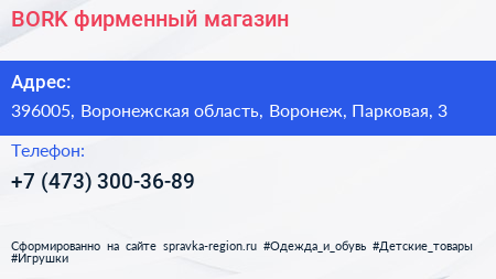 BORK, фирменный магазин по адресу 396005, Воронежская область, Воронеж, Парковая, 3 в дальнейшем Организация, размещена в следующих категориях: