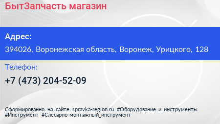 БытЗапчасть, магазин по адресу 394026, Воронежская область, Воронеж, Урицкого, 128 в дальнейшем Организация, размещена в следующих категориях: