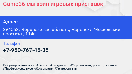 Game36, магазин игровых приставок по адресу 394053, Воронежская область, Воронеж, Московский проспект, 114в в дальнейшем Организация, размещена в следующих категориях: