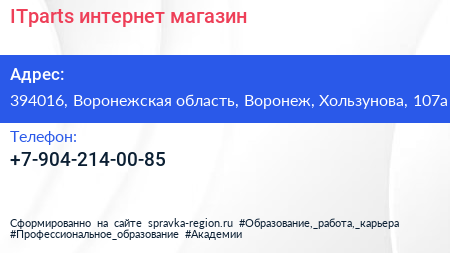 ITparts, интернет-магазин по адресу 394016, Воронежская область, Воронеж, Хользунова, 107а в дальнейшем Организация, размещена в следующих категориях: