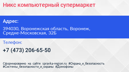 Никс, компьютерный супермаркет по адресу 394030, Воронежская область, Воронеж, Средне-Московская, 32Б в дальнейшем Организация, размещена в следующих категориях:
