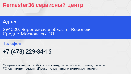 Remaster36, сервисный центр по адресу 394030, Воронежская область, Воронеж, Средне-Московская, 31 в дальнейшем Организация, размещена в следующих категориях:
