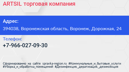 ARTSIL, торговая компания по адресу 394038, Воронежская область, Воронеж, Дорожная, 24 в дальнейшем Организация, размещена в следующих категориях: