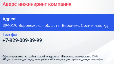 Аверс инжиниринг, компания по адресу 394019, Воронежская область, Воронеж, Солнечная, 7д в дальнейшем Организация, размещена в следующих категориях: