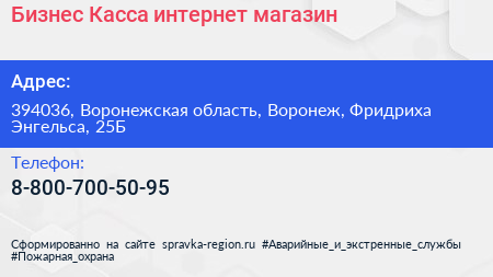 Бизнес-Касса, интернет-магазин по адресу 394036, Воронежская область, Воронеж, Фридриха Энгельса, 25Б в дальнейшем Организация, размещена в следующих категориях: