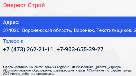 Эверест-Строй по адресу 394026, Воронежская область, Воронеж, Текстильщиков, 2 в дальнейшем Организация, размещена в следующих категориях: