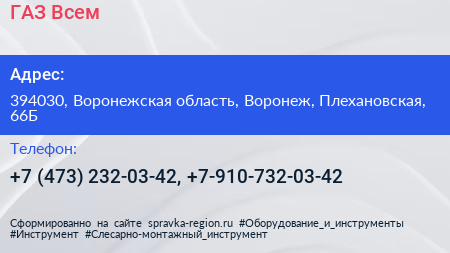 ГАЗ Всем по адресу 394030, Воронежская область, Воронеж, Плехановская, 66Б в дальнейшем Организация, размещена в следующих категориях: