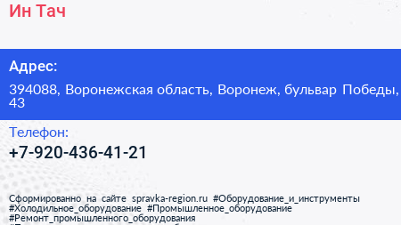 Ин Тач по адресу 394088, Воронежская область, Воронеж, бульвар Победы, 43 в дальнейшем Организация, размещена в следующих категориях: