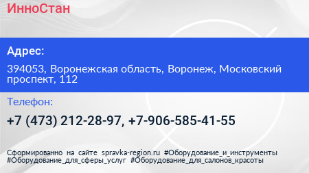 ИнноСтан по адресу 394053, Воронежская область, Воронеж, Московский проспект, 112 в дальнейшем Организация, размещена в следующих категориях: