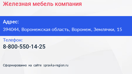 Железная мебель, компания по адресу 394044, Воронежская область, Воронеж, Землячки, 15 в дальнейшем Организация, размещена в следующих категориях:
