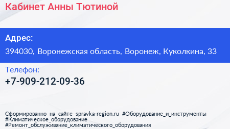 Кабинет Анны Тютиной по адресу 394030, Воронежская область, Воронеж, Куколкина, 33 в дальнейшем Организация, размещена в следующих категориях: