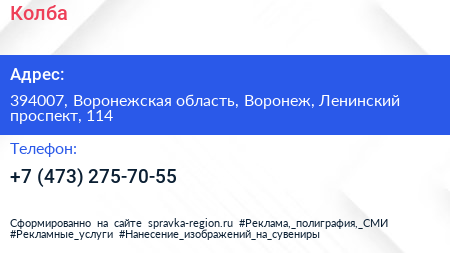 Колба по адресу 394007, Воронежская область, Воронеж, Ленинский проспект, 114 в дальнейшем Организация, размещена в следующих категориях: