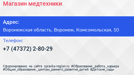 Магазин медтехники по адресу Воронежская область, Воронеж, Комсомольская, 10 в дальнейшем Организация, размещена в следующих категориях: