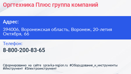 Оргтехника Плюс, группа компаний по адресу 394006, Воронежская область, Воронеж, 20-летия Октября, 66 в дальнейшем Организация, размещена в следующих категориях: