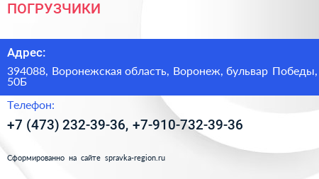 ПОГРУЗЧИКИ по адресу 394088, Воронежская область, Воронеж, бульвар Победы, 50Б в дальнейшем Организация, размещена в следующих категориях: