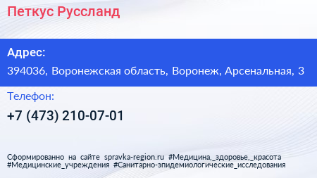 Петкус Руссланд по адресу 394036, Воронежская область, Воронеж, Арсенальная, 3 в дальнейшем Организация, размещена в следующих категориях: