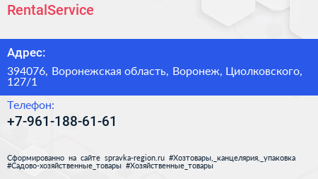 RentalService по адресу 394076, Воронежская область, Воронеж, Циолковского, 127/1 в дальнейшем Организация, размещена в следующих категориях: