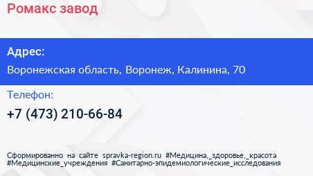 Ромакс, завод по адресу Воронежская область, Воронеж, Калинина, 70 в дальнейшем Организация, размещена в следующих категориях: