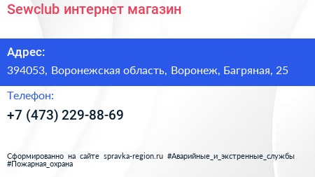 Sewclub, интернет-магазин по адресу 394053, Воронежская область, Воронеж, Багряная, 25 в дальнейшем Организация, размещена в следующих категориях: