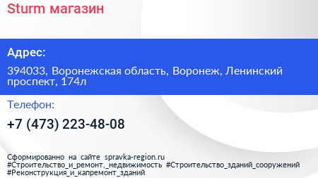 Sturm, магазин по адресу 394033, Воронежская область, Воронеж, Ленинский проспект, 174л в дальнейшем Организация, размещена в следующих категориях: