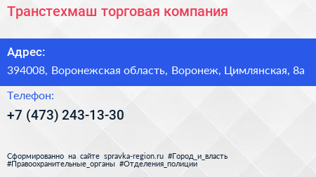 Транстехмаш, торговая компания по адресу 394008, Воронежская область, Воронеж, Цимлянская, 8а в дальнейшем Организация, размещена в следующих категориях: