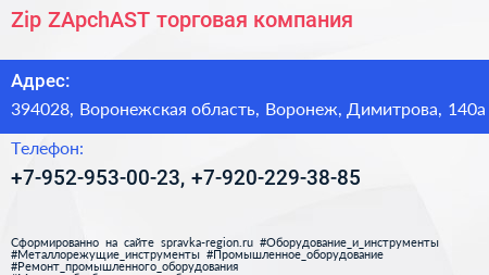 Zip-ZApchAST, торговая компания по адресу 394028, Воронежская область, Воронеж, Димитрова, 140а в дальнейшем Организация, размещена в следующих категориях: