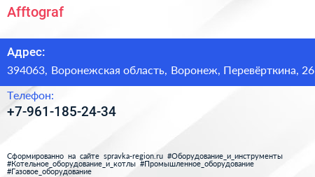Afftograf по адресу 394063, Воронежская область, Воронеж, Перевёрткина, 26 в дальнейшем Организация, размещена в следующих категориях: