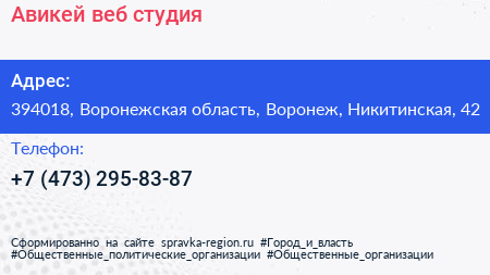 Авикей, веб-студия по адресу 394018, Воронежская область, Воронеж, Никитинская, 42 в дальнейшем Организация, размещена в следующих категориях: