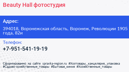 Beauty Hall, фотостудия по адресу 394018, Воронежская область, Воронеж, Революции 1905 года, 82и в дальнейшем Организация, размещена в следующих категориях: