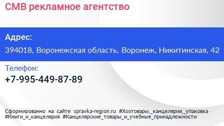 CMB, рекламное агентство по адресу 394018, Воронежская область, Воронеж, Никитинская, 42 в дальнейшем Организация, размещена в следующих категориях: