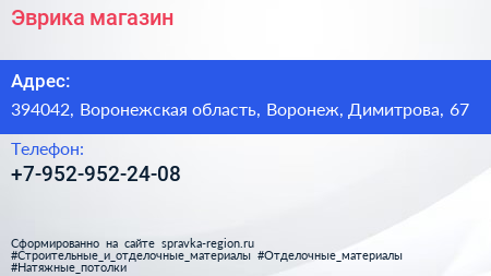 Эврика, магазин по адресу 394042, Воронежская область, Воронеж, Димитрова, 67 в дальнейшем Организация, размещена в следующих категориях: