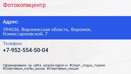 Фотокопицентр по адресу 394036, Воронежская область, Воронеж, Комиссаржевской, 7 в дальнейшем Организация, размещена в следующих категориях: