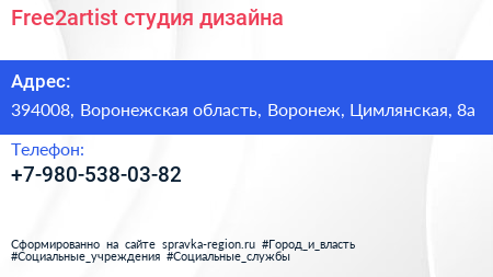 Free2artist, студия дизайна по адресу 394008, Воронежская область, Воронеж, Цимлянская, 8а в дальнейшем Организация, размещена в следующих категориях: