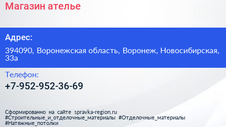 Магазин-ателье по адресу 394090, Воронежская область, Воронеж, Новосибирская, 33а в дальнейшем Организация, размещена в следующих категориях:
