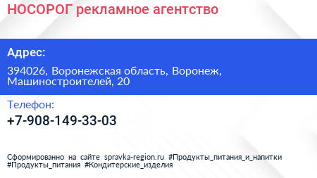 НОСОРОГ, рекламное агентство по адресу 394026, Воронежская область, Воронеж, Машиностроителей, 20 в дальнейшем Организация, размещена в следующих категориях:
