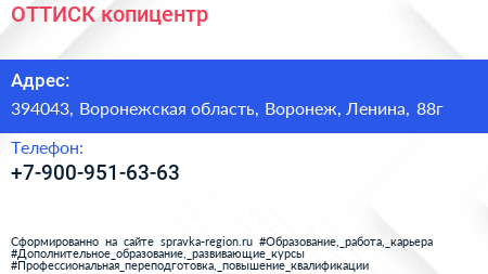 ОТТИСК, копицентр по адресу 394043, Воронежская область, Воронеж, Ленина, 88г в дальнейшем Организация, размещена в следующих категориях: