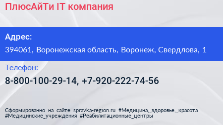 ПлюсАйТи, IT-компания по адресу 394061, Воронежская область, Воронеж, Свердлова, 1 в дальнейшем Организация, размещена в следующих категориях:
