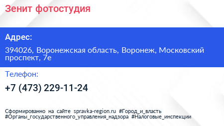 Зенит, фотостудия по адресу 394026, Воронежская область, Воронеж, Московский проспект, 7е в дальнейшем Организация, размещена в следующих категориях: