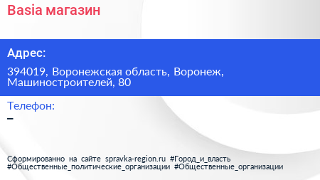 Basia, магазин по адресу 394019, Воронежская область, Воронеж, Машиностроителей, 80 в дальнейшем Организация, размещена в следующих категориях: