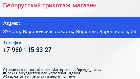 Белорусский трикотаж, магазин по адресу 394055, Воронежская область, Воронеж, Ворошилова, 26 в дальнейшем Организация, размещена в следующих категориях: