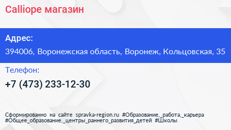 Calliope, магазин по адресу 394006, Воронежская область, Воронеж, Кольцовская, 35 в дальнейшем Организация, размещена в следующих категориях: