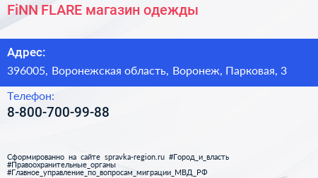 FiNN FLARE, магазин одежды по адресу 396005, Воронежская область, Воронеж, Парковая, 3 в дальнейшем Организация, размещена в следующих категориях: