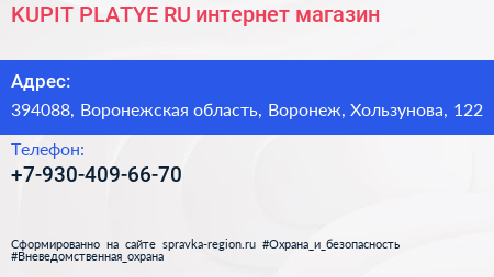 KUPIT-PLATYE.RU, интернет-магазин по адресу 394088, Воронежская область, Воронеж, Хользунова, 122 в дальнейшем Организация, размещена в следующих категориях: