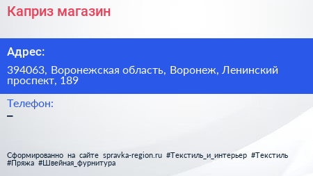 Каприз, магазин по адресу 394063, Воронежская область, Воронеж, Ленинский проспект, 189 в дальнейшем Организация, размещена в следующих категориях: