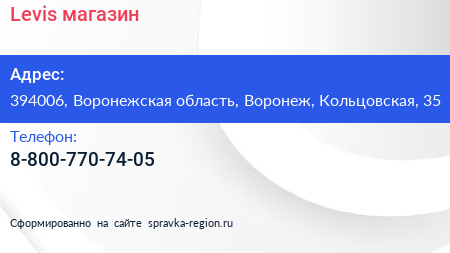 Levis, магазин по адресу 394006, Воронежская область, Воронеж, Кольцовская, 35 в дальнейшем Организация, размещена в следующих категориях: