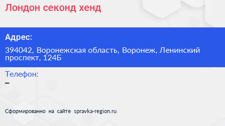 Лондон, секонд-хенд по адресу 394042, Воронежская область, Воронеж, Ленинский проспект, 124Б в дальнейшем Организация, размещена в следующих категориях: