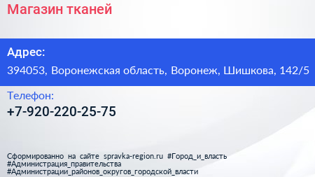 Магазин тканей по адресу 394053, Воронежская область, Воронеж, Шишкова, 142/5 в дальнейшем Организация, размещена в следующих категориях: