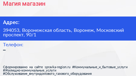 Магия, магазин по адресу 394053, Воронежская область, Воронеж, Московский проспект, 90/1 в дальнейшем Организация, размещена в следующих категориях: