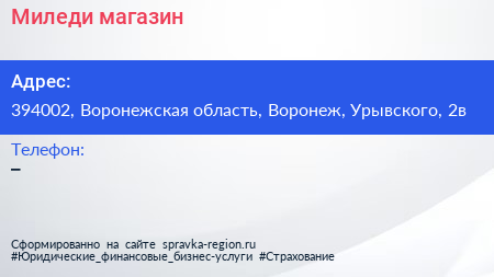 Миледи, магазин по адресу 394002, Воронежская область, Воронеж, Урывского, 2в в дальнейшем Организация, размещена в следующих категориях: