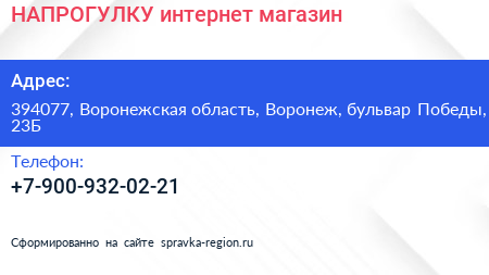 #НАПРОГУЛКУ, интернет-магазин по адресу 394077, Воронежская область, Воронеж, бульвар Победы, 23Б в дальнейшем Организация, размещена в следующих категориях:
